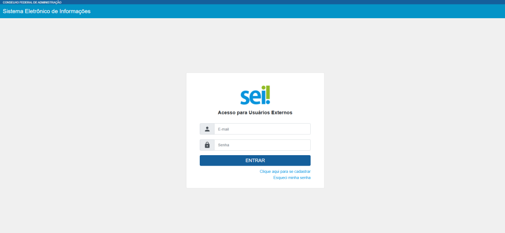 - Vá para a página de login do SEI e utilize seu e-mail e senha cadastrados.