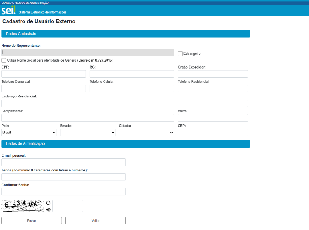 - Acesse o Portal de Cadastro: Vá para o endereço oficial de cadastro de usuários externos: https://sei.cfa.org.br/externo.